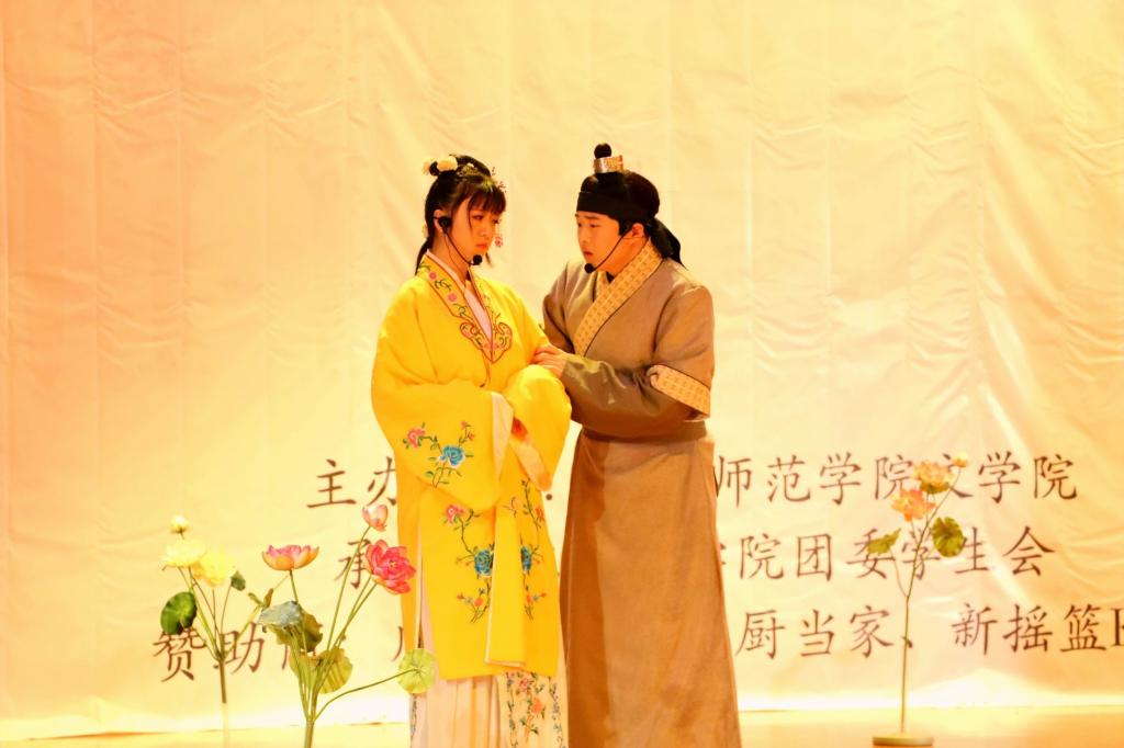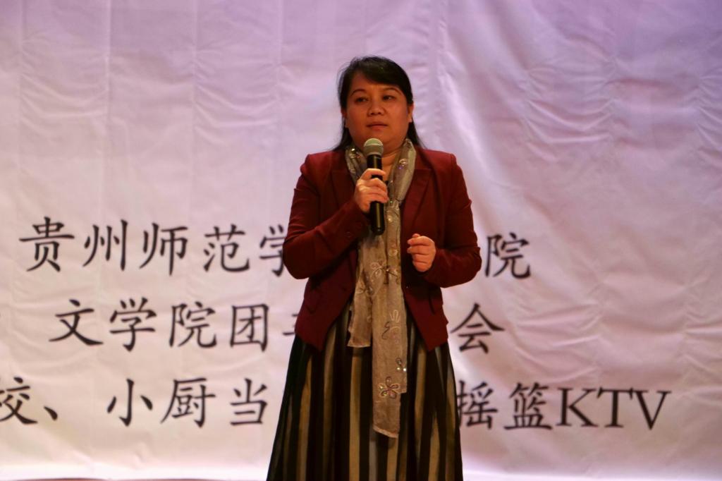 晚会接近尾声,韦丹对同学们的表演给予肯定。丰富的剧本,演技的不断成熟,她肯定这是大家不断的超越和进步,得以让在场的观众享受了一场视觉盛宴。“虽然我们不是专业的演员,但是这并不妨碍身为文学院学子的我们去选择和演绎。正因如此,我们在选择剧本上拥有独特的眼光,我们更能懂得如何在文学作品中解读人物。戏剧就是人生,人生也是舞台,希望大家在戏剧的舞台上演绎更加精彩的人生。”这是韦丹对同学们辛苦演绎的点赞,也是对莘莘学子的殷切期望。