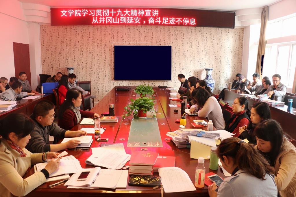 为深入推动文学院全体教职工学习贯彻党的十九大精神和习近平总书记在参加贵州代表团讨论时的重要讲话精神,11月10日下午,教工支部书记陈欣在文学院313会议室作了主题为“从井冈山到延安,奋斗足迹永不停息,学习践行十九大精神”的宣讲活动。此次宣讲由院党委书记韦丹主持。