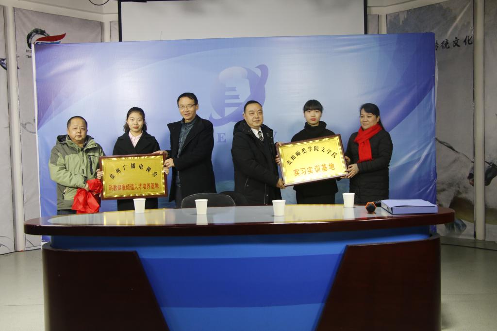 12月20日,文学院与贵州广播电视台科教频道共建学生实习实训基地揭牌仪式在宁静楼627演播厅举行,标志着文学院在校企合作方面迈出新的步伐。文学院党委书记韦丹、文学院院长吴俊、贵州广播电视台科教健康频道总监刘康翔、《走遍贵州》制片人赵海以及文学院广电、广编教研室部分教师出席了揭牌仪式,我院16级广播电视学、广播电视编导班的学子积极参与了本次活动。此次揭牌仪式由我院2015级广播电视编导班朱昆同学主持。