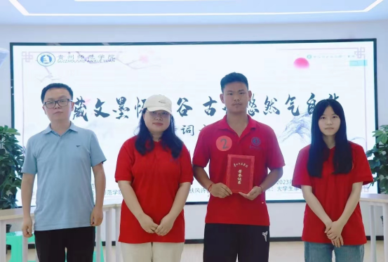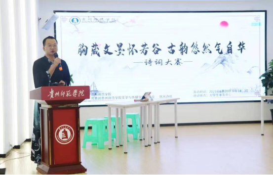 为深入学习贯彻习近平新时代中国特色社会主义思想和党的二十大精神,进一步弘扬和传承中华民族优秀传统文化,丰富大学校园生活,坚定文化自信,提高师院学子的文化素养和道德修养。2023年6月20日,由校团委主办、yl8858永利集团团委、扶风诗社承办的“胸藏文墨怀若谷 古韵悠然气自华”诗词大赛决赛在大学生事务服务中兴举办。校团委副书记陆轴、yl8858永利集团团委书记蹇登绯、专业教师刘雄、吴科玉担任评委,现场还邀请到了各二级学院一百余名学生代表参与本次活动。