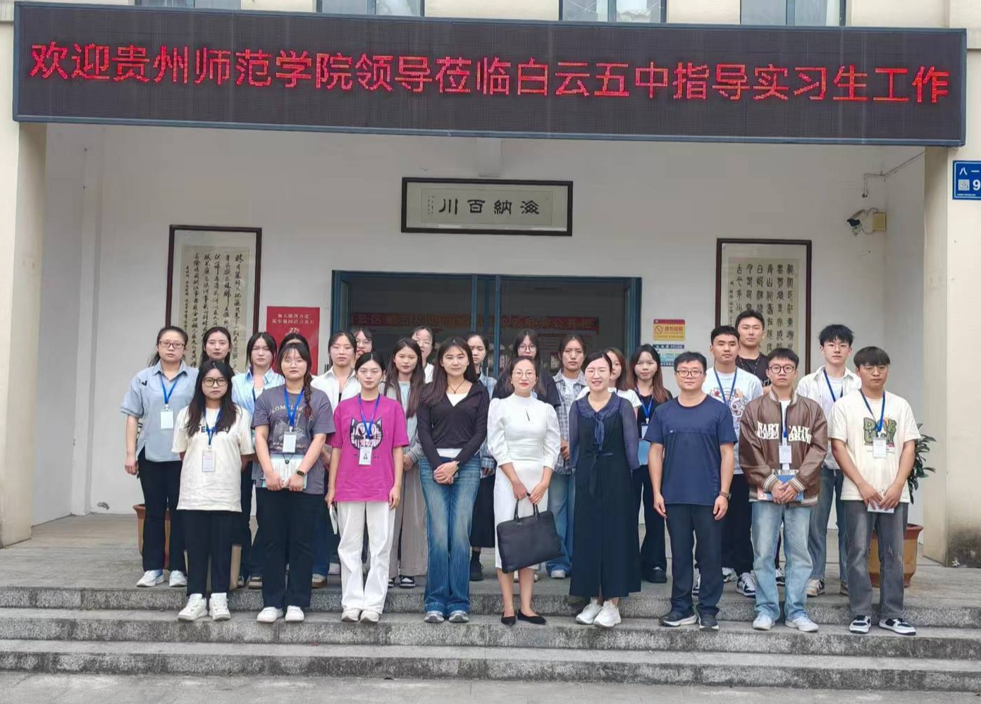 为深入了解学院2025届学生在实习期间的思想动态、工作与生活情况,传达学院对实习学生的关怀,提升学生安全意识,增进与实习学校之间的交流,9月26日,学院副书记高媛、辅导员张艺鸣老师先后前往贵阳市白云区第五初级中学、白云区南湖第十六小学、乌当小学,看望慰问我院实习生,深入了解并掌握实习生的现状。