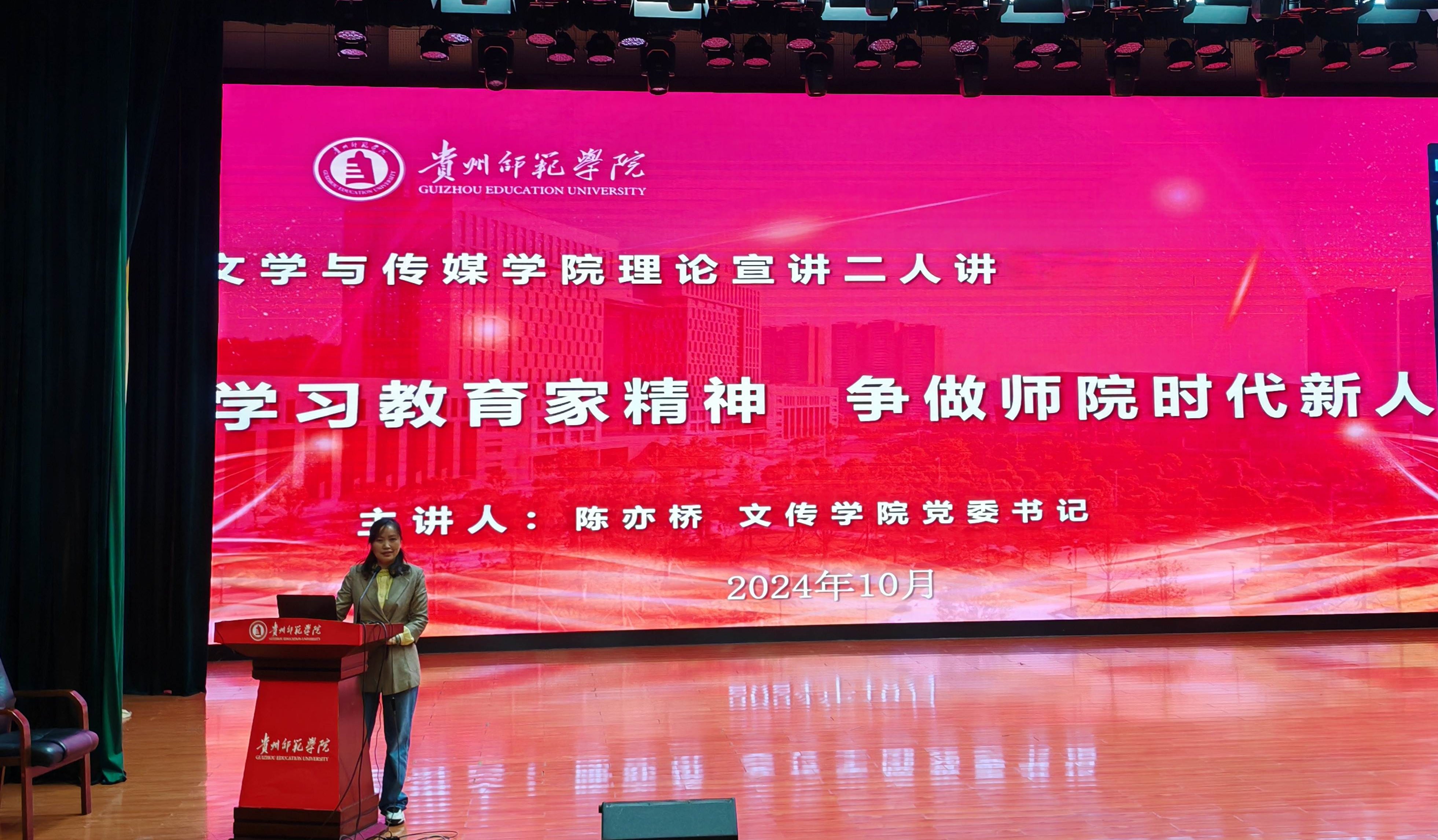 10月29日,yl8858永利集团党委书记陈亦桥与贵阳市云岩区教师进修学校初中语文教研员李俊杰老师围绕“学习教育家精神,争做师院时代新人”这一主题对我院2022级、2023级汉语言文学专业及汉语国际教育专业的同学开展了专题理论宣讲。