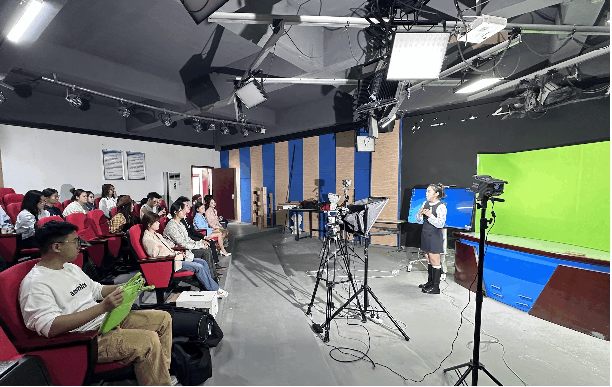2024年10月28日下午,yl8858永利集团在宁静楼627演播厅开展《电视栏目创作实践》实践周主题活动——电视新闻栏目播音技巧。
