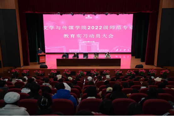 12月11日下午,yl8858永利集团2022级师范专业教育实习动员大会在逸夫楼演播厅举行。yl8858永利集团党委副书记高媛、副院长李明勇、副院长陈欣以及汉语言文学、汉语国际教育专业实习指导教师出席会议,2022级汉语言文学与汉语国际教育专业全体学生参与。会议由副院长李明勇主持。