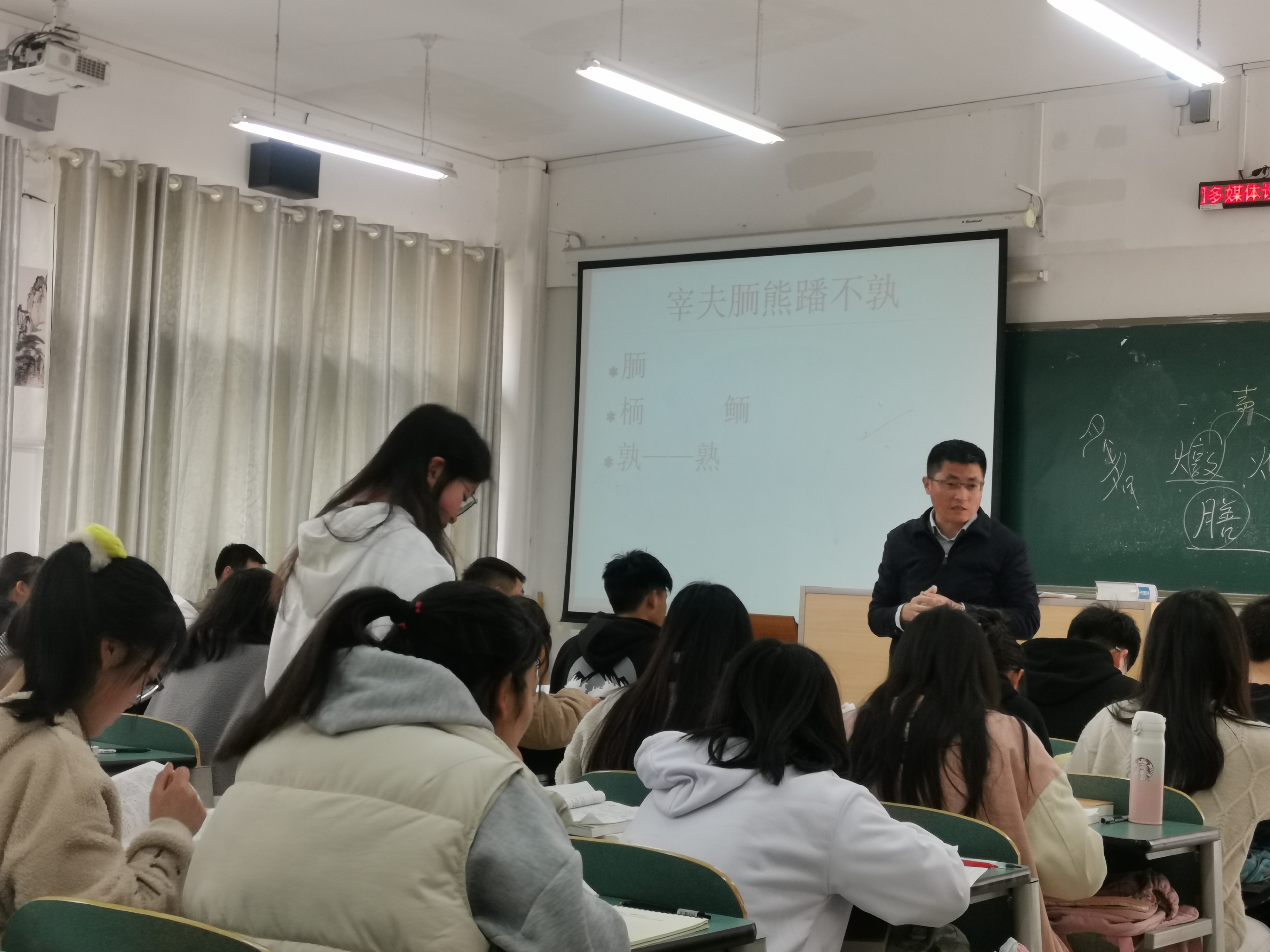 本次专题研讨会以课堂听课、课后评课和专题讨论的方式开展。在课堂听课环节中,教研室全体老师先后听了三位老师在两个专业执教的《古代汉语》公开课,包括卓婷老师执教《晋灵公不君》,刘雄老师执教《烛之武退秦师》和马智忠老师执教《晋灵公不君》。三位老师虽上的是同一门课程,然而风格各异,各有所长。