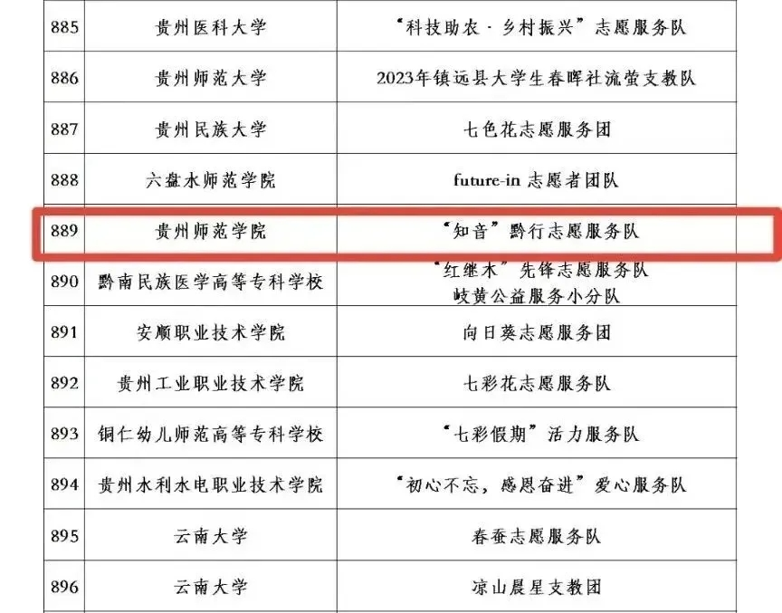为深入学习贯彻习近平新时代中国特色社会主义思想和党的二十大精神,团中央青年志愿者行动指导中心,中国青年志愿者协会秘书处近日发布了《关于遴选2023年七彩假期志愿服务示范团队的公告》,来自全国各个高校的3762多支志愿服务团队提交了申报材料,经审核遴选,共有1000支团队入选2023年“七彩假期”志愿服务示范团队。我院的“知音”黔行志愿服务队入选2023年“七彩假期”志愿服务示范团队。
