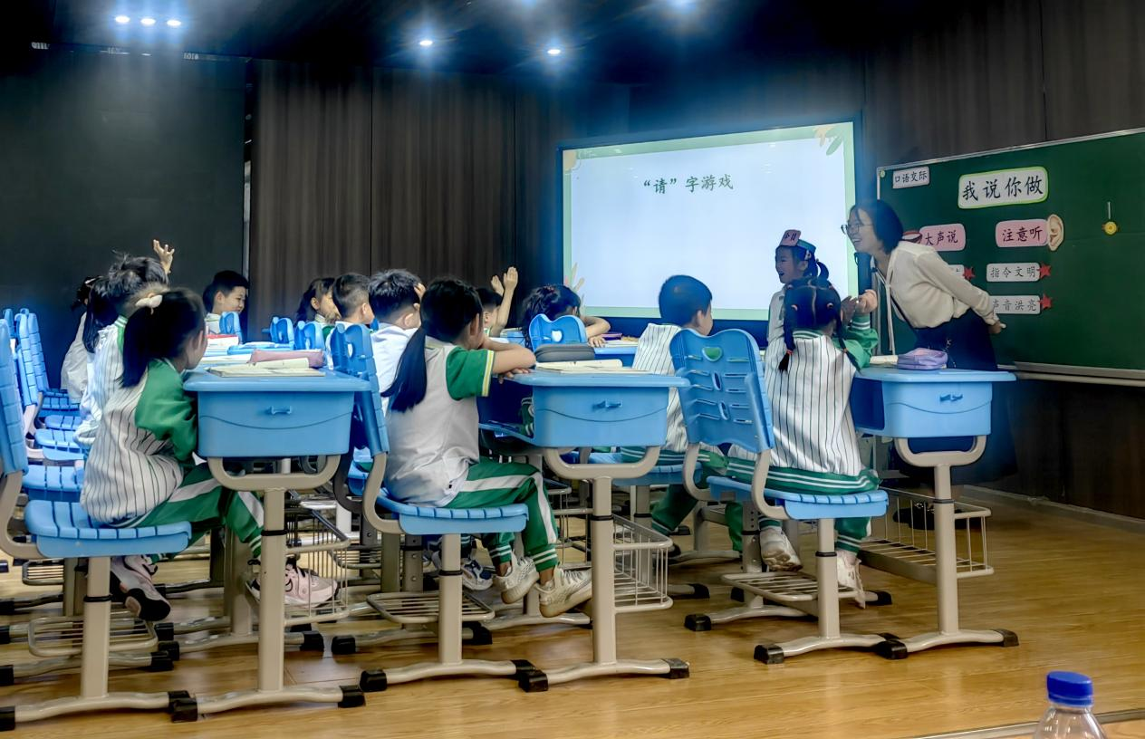 上午的活动聚焦大单元教学理论,开展了两堂精彩的示范课。华润国际小学教师许明珠执教的一年级口语交际《我说你做》,将游戏和口语交际的目标任务结合起来,带领学生一起学习如何礼貌地向别人进行动作指示。华润国际小学教师王潇在讲解汉语拼音j、q、x的过程中,充分注重图文并茂对调动学生积极性的作用,她以引导学生自主看图和创编儿歌的方式搭建起了一座学习的桥梁,寓教于乐。随后,陈欣、尹洁与15名优师计划生就两位教师的示范课展开了评课议课,最后得出一致结论——两位老师的课堂内容重难点突出,教学过程循序渐进,教学方法运用得当,是两节趣味盎然、学习效果较好的成功课堂。