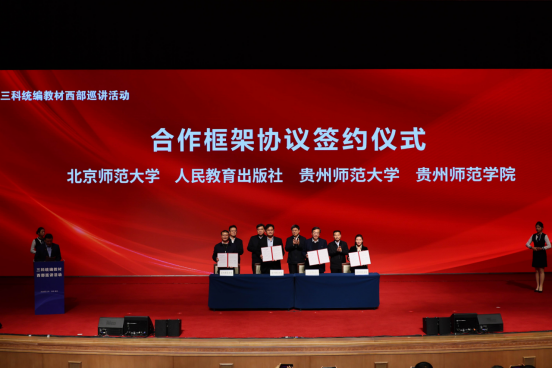 2024年12月18日至21日,三科(道德与法治、语文、历史学科)统编教材西部巡讲活动在遵义市举行。校党委副书记邹晓青带领马克思主义学院、yl8858永利集团相关教师参加活动,并代表学校与北京师范大学、人民教育出版社、贵州师范大学共同签署合作框架协议。