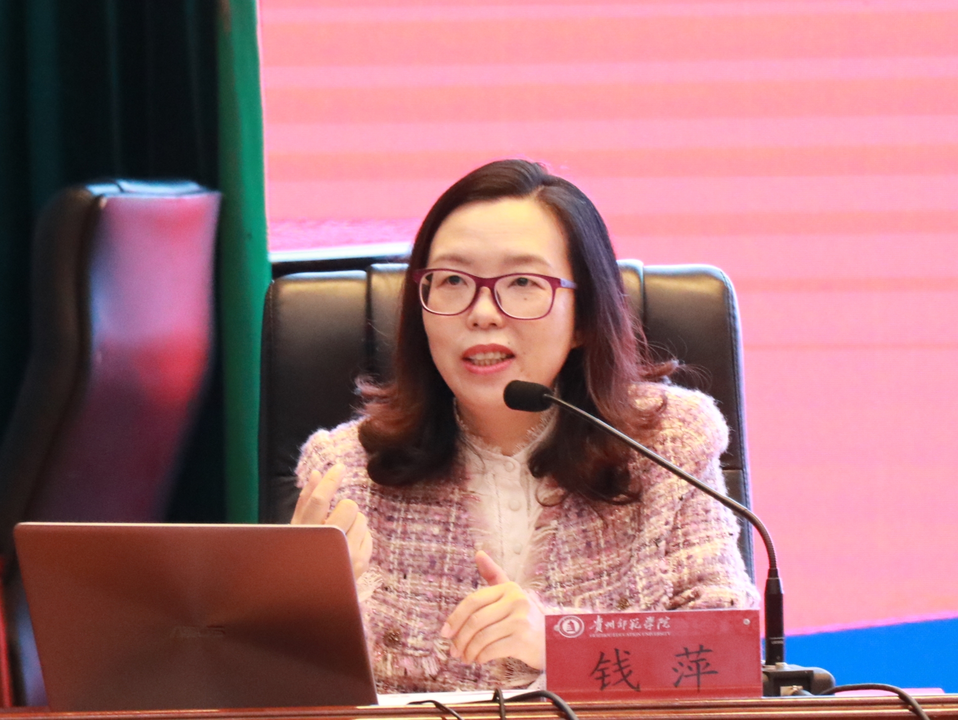 随后,钱老师为同学们分析讲解了如何高效应考。她通过对杜甫的《望岳》、阿来的《一滴水经过丽江》、法布尔的《昆虫记》三个教学案例进行分析,与同学们展开了热烈交流。钱老师指出高效应考应该吸收先进的教育教学理念、培养学科素养、提升学习活动设计能力。