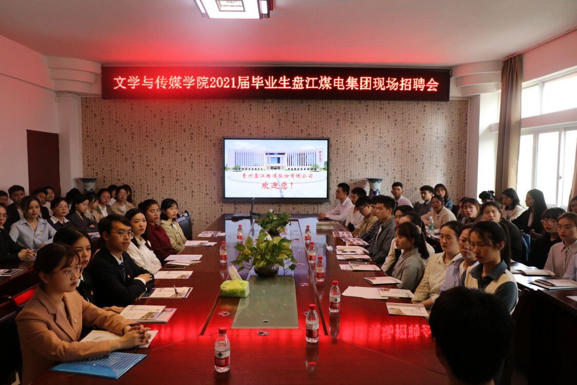 贵州盘江煤电集团有限责任公司是贵州省国有独资大型企业,聚焦主责主业,着力打造煤炭和电力两大核心板块,是我国长江以南最大的煤炭企业,公司未来将建成产业结构优、发展动能足、资产质量高、人才支撑强、生态环境美、具有较强市场竞争力的现代化能源集团。招聘会上,招聘单位通过播放宣传片、PPT展示和互动交流的方式向同学们介绍了公司的概况和发展理念,阐述了公司的人才需求以及毕业生就职后的福利待遇。会上,同学们就未来的发展前景和劳动合同签订的相关事宜,与应聘单位进行了咨询和了解。