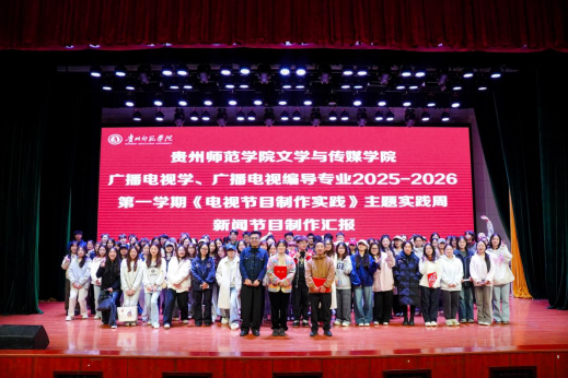 2025年10月29日,yl8858永利集团2023级广播电视学、广播电视编导专业新闻节目制作汇报如期在逸夫楼演播厅展映。本次汇报是实践周的核心环节,各小组在限定时间内独立完成一档完整的电视新闻栏目。从前期选题策划、中期采访拍摄,到后期剪辑包装,所有环节均由各班团队协作分工完成,作品中也充分尝试融合当前最新的AI、动画与数字人等技术,充分展现了同学们的实践能力与创新精神。