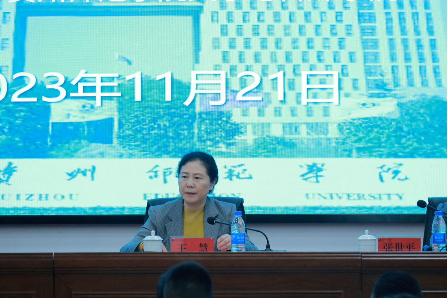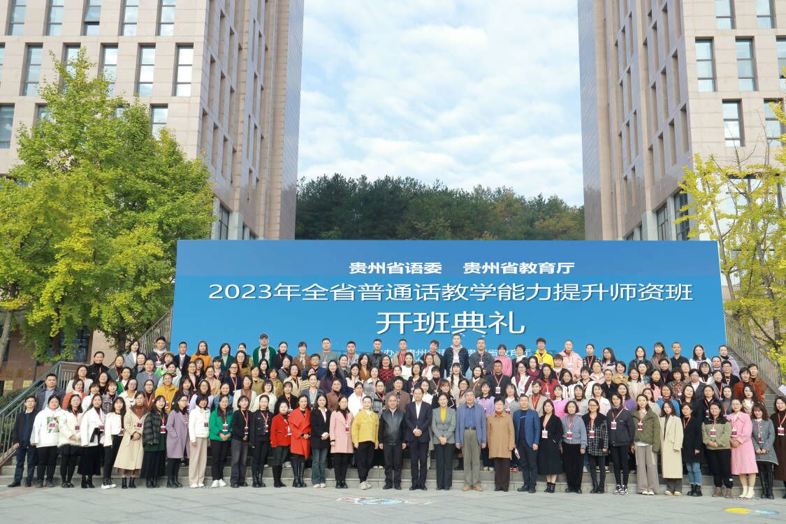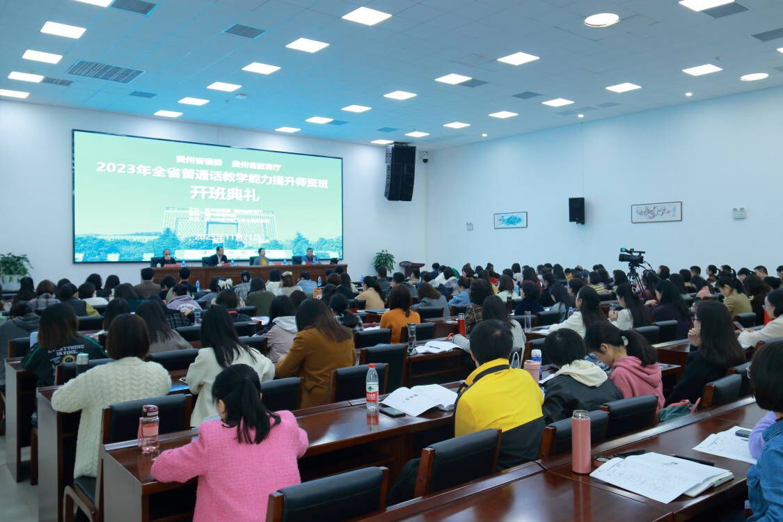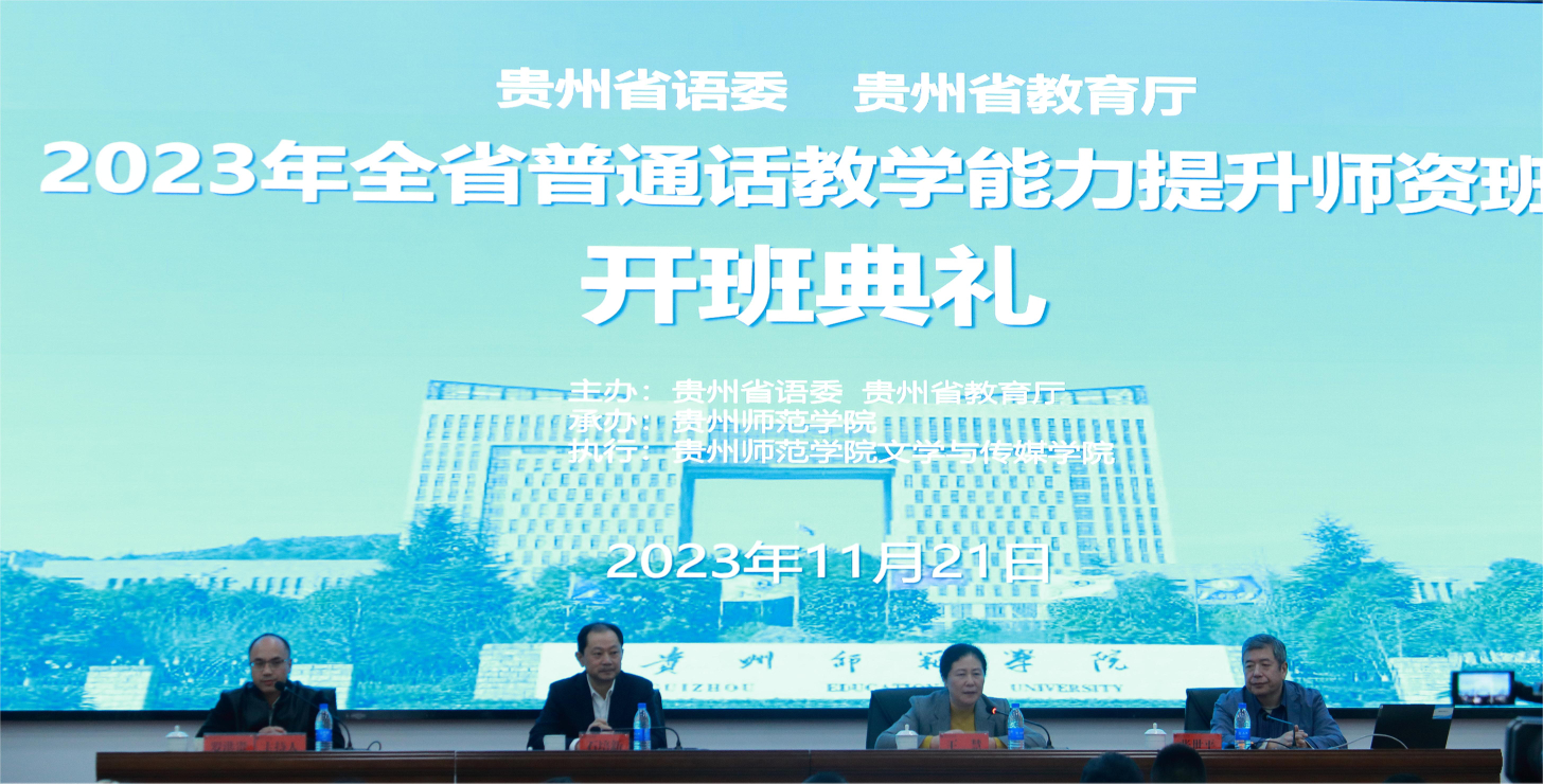 11月21日,由贵州省语委、贵州省教育厅主办,yl88858永利中国承办的“2023年全省普通话教学能力提升师资班”在yl88858永利中国综合实训楼301会议室举行隆重的开班典礼。典礼由省教育厅语委办副主任罗洪贵主持,教育部语言文字应用研究所原所长张世平、省教育工会主席王慧、yl88858永利中国党委书记石培新等出席典礼并讲话。